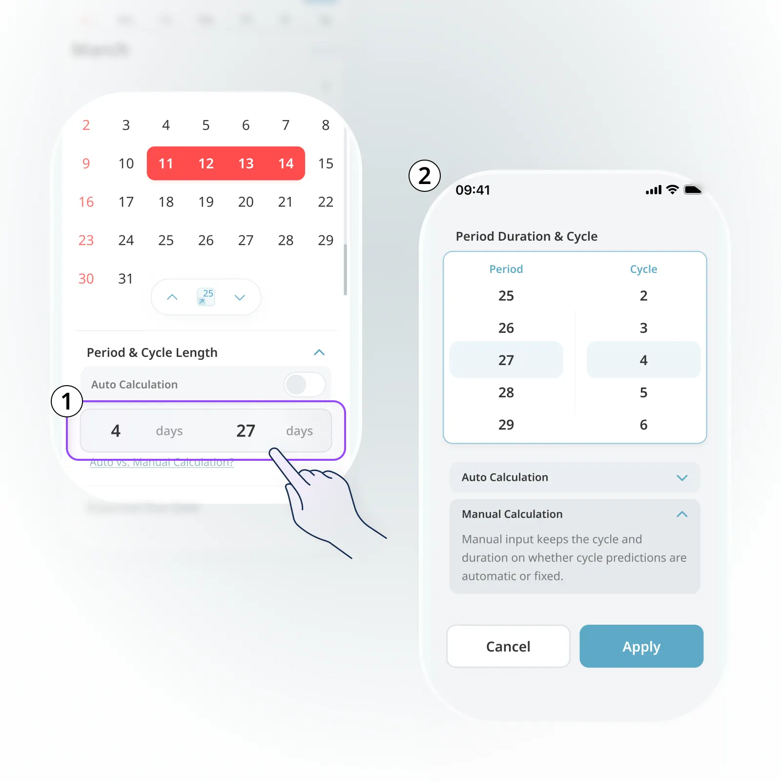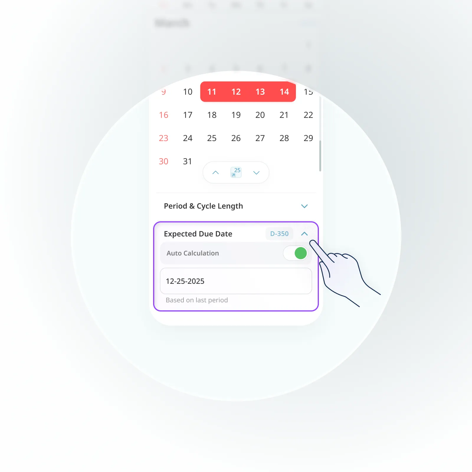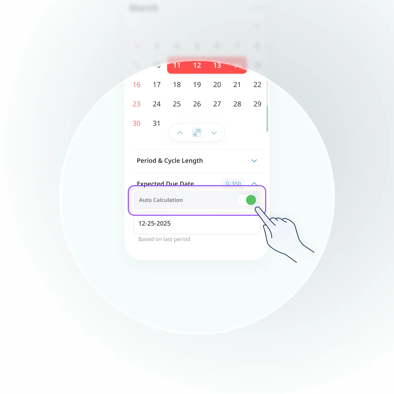 • Auto Calculation OFF → Prediction based on your manually entered cycle and period